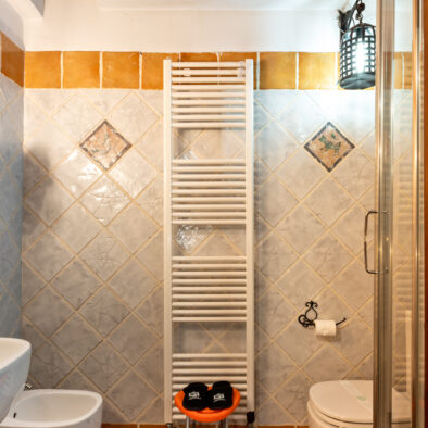 Bagno in camera completamente attrezzato con doccia, phon e set cortesia.